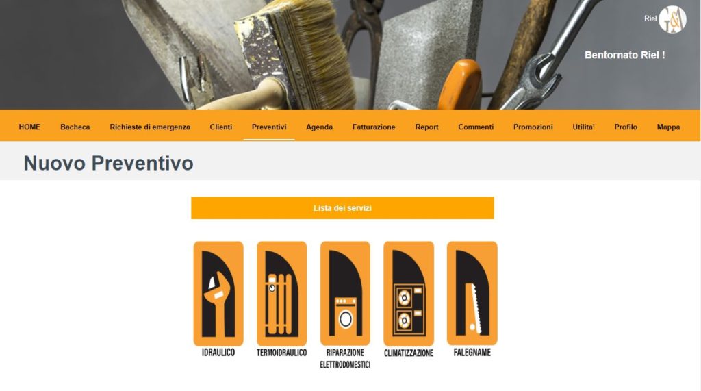 Nuovo preventivo - Permette di inserire un nuovo preventivo a nome dell'utente corrispondente
